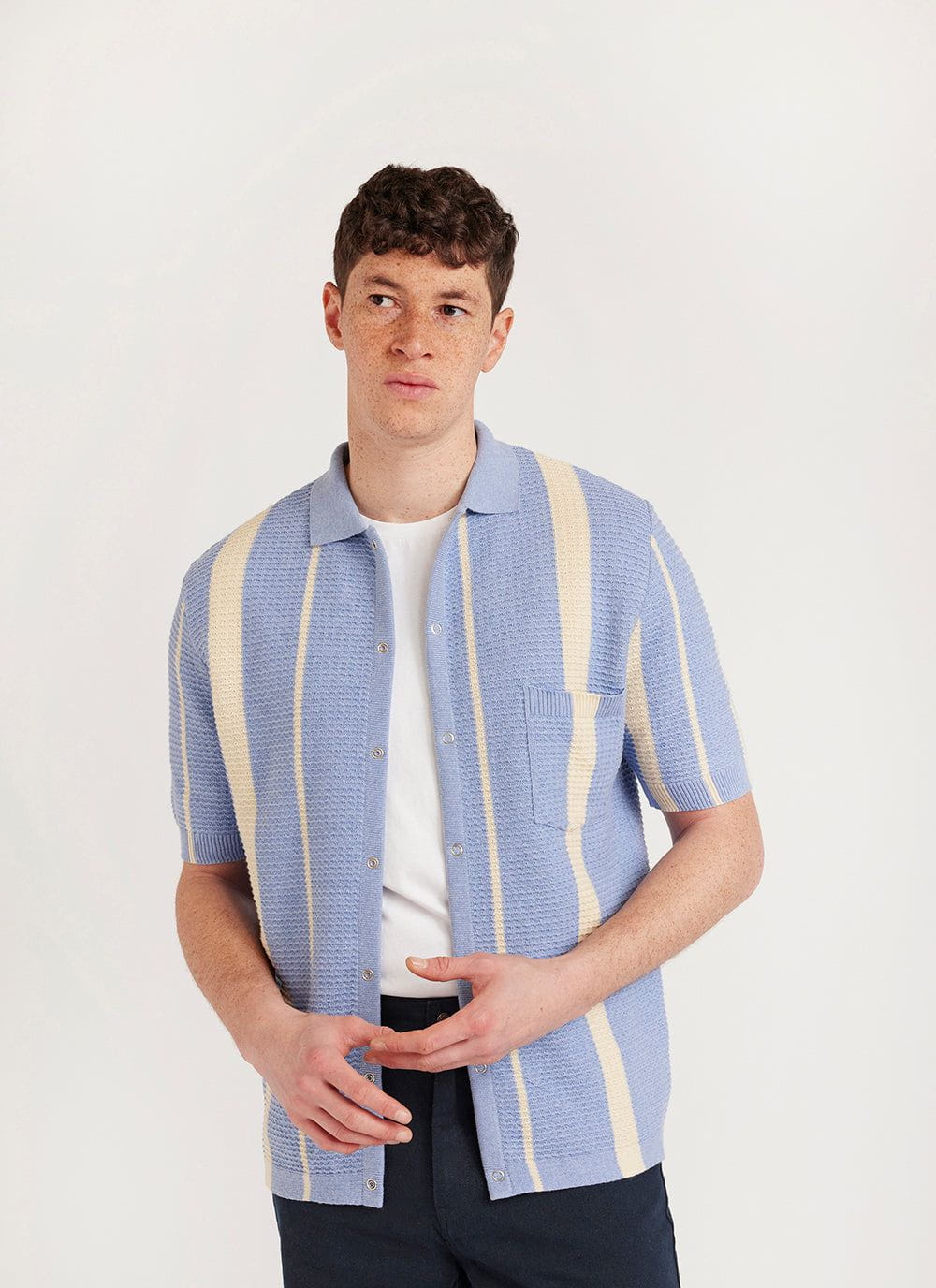 Men S Short Sleeve Knitted Shirt Adaman Breeze Blue Percival Menswear